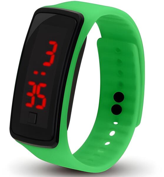 Digitális, szilikonszíjas EL-11582 karóra verhetetlen áron. Az időt gomb megnyomása után mutatja. Pillekönnyű, szilikon szíjának köszönhetően érzékeny bőrű emberek is viselhetik. Az időt az órán található nyomógomb lenyomva tartásával lehet beállítani.
