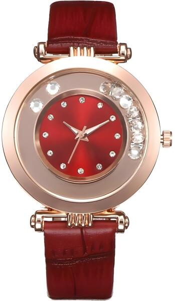 Modern UL-12326 karóra hölgyeknek műbőr szíjal. A karóra tokját mozgó ékkövek díszítik.