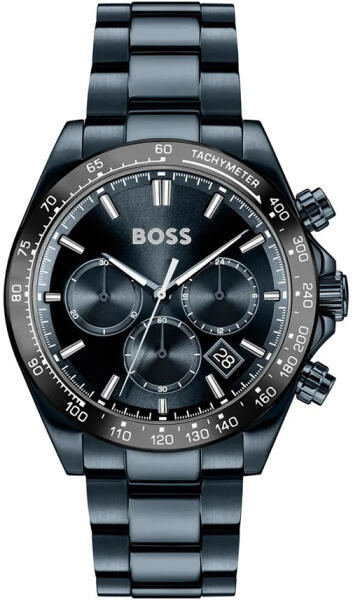 BOSS HERO 2_0 karóra 5 BAR nyomásig vízálló, éjkék színű nemesacél tokkal, ásványi kristályüveggel, éjkék színű nyitáskönnyített békazáras csatközéppel készül. Az órát pontos quartz óraszerkezet működteti, mely elemmel működik. Az óráról a pontos idő mellett leolvasható a nap is.