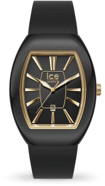 Az Ice Watch Boliday Black Gold női karóra 35mm 024031 karóra házának anyaga műanyag, színe fekete, a szíjának anyaga szilikon és a színe fekete. Az óratok átmérője 35 mm, alakja elliptikus. A karóra üvege kristály (nehezen karcolható), szerkezete kvarc és vízállósága 3 atm (30m) (cseppmentes).