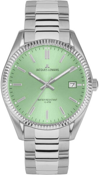 Jégzöld színű "sunburst" hatású számlap, dátum kijelzéssel.