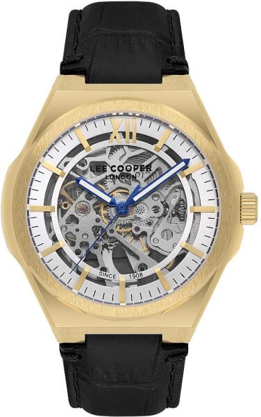 Férfi karóraAutomatikus meghajtásTok átmérője 43,0 mmKör alakú tokFém tokAranyszínű tokBőrszíjFekete színű szíjMutatós számlapTizenkét indexű számlapÜveg anyaga - ásványi üvegVízálló a mindennapi viselet során