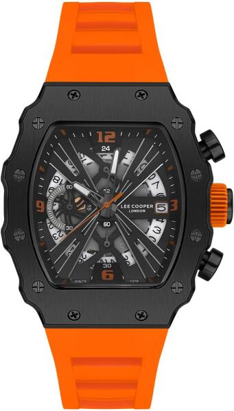 Férfi karóraElemről működikTéglalap alakú tokFém tokFekete tok színNarancssárga szíj színeMutatós számlapFekete számlap színTizenkét indexszel ellátott számlapÜveg anyaga - ásványi üvegÁltalános viselet esetén vízálló