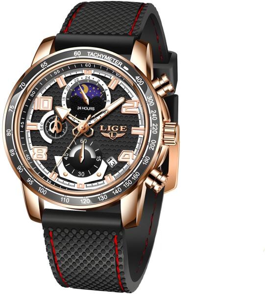 Minőségi LIGE TA-14656 karóra uraknak. Ezt az modern karórát nem csak hétköznapokon viselheti, hanem üzleti találkozókon vagy eseményeken is. Ütésálló. A karóra része a teljes naptár és a kronográf. Mutatói foszforeszkálnak a sötétben. Ajándékdobozban szállítjuk.