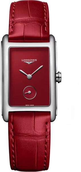 A Longines DolceVita női karóra L5.512. 4.91. 2 karóra házának anyaga Nemesacél, színe Ezüst, a szíjának anyaga Bőr és a színe Piros. Az óratok átmérője 35 mm, alakja Kerek. A karóra üvege Zafír (karcolásmentes), szerkezete Kvarc és vízállósága 3 atm (30m) (cseppmentes).