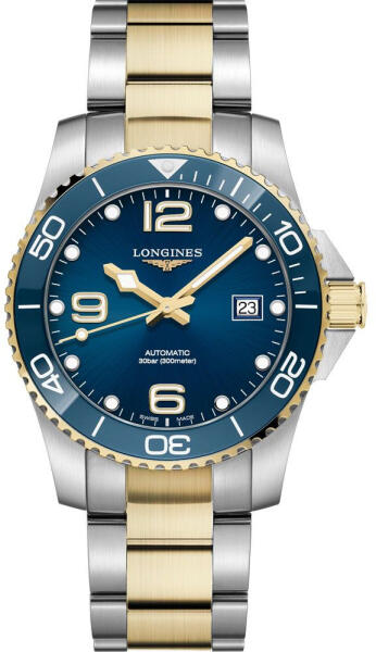 A Longines HydroConquest férfi karóra L3.781. 3.96. 7 karóra házának anyaga Nemesacél, színe Arany, Ezüst, a szíjának anyaga Nemesacél és a színe Arany, Ezüst. Az óratok átmérője 41 mm, alakja Kerek. A karóra üvege Zafír (karcolásmentes), szerkezete Automata és vízállósága 30 atm (300m) (búvárkodásra is alkalmas).