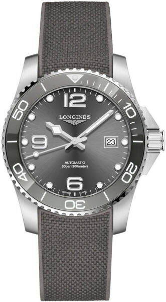 A Longines HydroConquest férfi karóra L3.781. 4.76. 9 karóra házának anyaga Nemesacél, színe Ezüst, a szíjának anyaga Szilikon és a színe Szürke. Az óratok átmérője 41 mm, alakja Kerek. A karóra üvege Zafír (karcolásmentes), szerkezete Automata és vízállósága 30 atm (300m) (búvárkodásra is alkalmas).