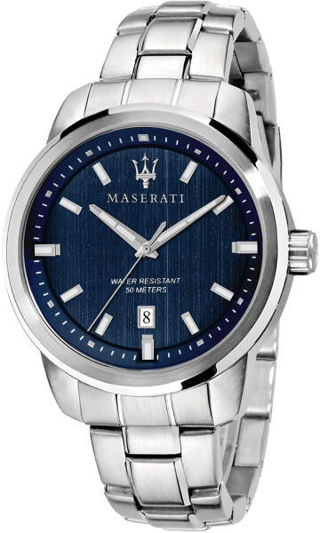 Maserati Successo férfi karóra R8853121004 egy kerek formájú, ezüst színű nemesacél óratokkal, kék analóg számlappal és ezüst nemesacél szíjjal rendelkező divatos Maserati karóra. Az óra elemmel működő kvarc szerkezettel és 5 ATM vízállósággal rendelkezik, tehát mérsékelten vízálló. Ez a fantasztikus óra most 59900 áron megrendelhető webshopunkban, melyre 24 hónap garanciát adunk és gyári díszdobozban szállítjuk. Ne feledd, hogy 20 ezer Ft feletti rendelésedet 2 nap alatt ingyen házhoz visszük, vagy átveheted bármelyik BL Óraszalonban is.