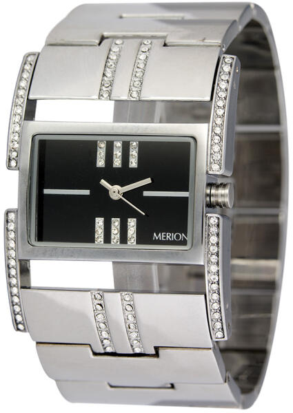 Merion női ékszeróra, ezüst színű fém tok, ezüst színű fém csat, fekete színű számlap, ásványüveg, quartz szerkezet, cseppmentesség (3171-1)