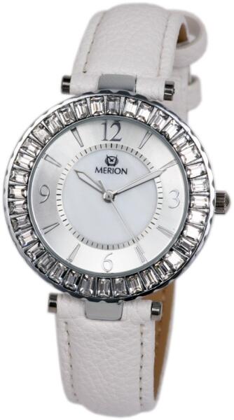 Merion női karóra, ezüst színű fém tok, fehér színű bőrszíj, ezüst színű számlap, ásványüveg, quartz szerkezet, cseppmentesség (3173-1)