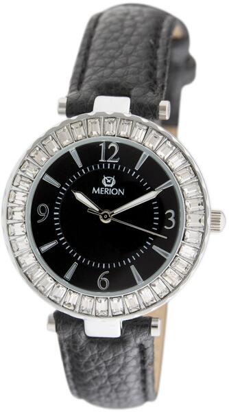 Merion női karóra, ezüst színű fém tok, fekete színű bőrszíj, fehér színű számlap, ásványüveg, quartz szerkezet, cseppmentesség (3173-7)