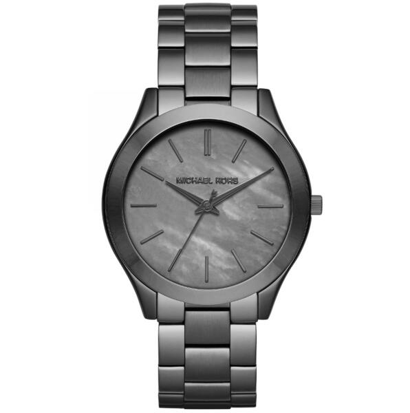 Divat Michael Kors karórák a Slim Runway kollekcióból. Ideális kiegészítők nőknek , akik előnyben részesítik az analóg és kerek alakú karórákat. A belül ellenálló 8 mm magas tokban, melyet minőségi acél alkot , megbízható elemes (quartz) gépezetet talál, mely 42 mm átmérőjű számlapot működtet. A számlapot ellenálló ásványi üveg véd. A tok szürke, számlap gyöngyház és a szíj szürke színű. Anyagát tekintve acél. A karórák v ízállósága < strong> 5 ATM .   Használati utasítás csak angol nyelven van