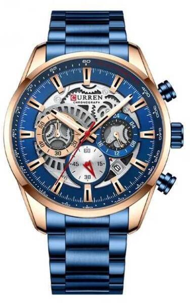 Kék szíjas, kék számlapos, férfi karóra, dátum kijelzéssel, Chronographal. Sportos és elegáns öltözethez is tökéletes kiegészítő. Prémium minőség. TULAJDONSÁGOK ásványi kristályüveg quartz szerkezet Működő Chronographal jól látható számlapMÉRETEKház szélessége: 4,5 cm ház magassága: 1,3 cm szíj hossza: 26 cm szíj szélessége: 2 cm