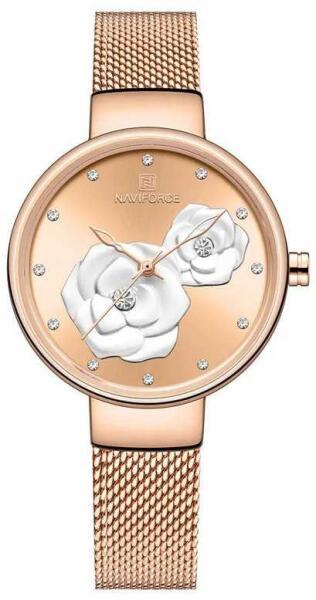 Naviforce Milánói szíjas női karóra, arany számlappal, 3D virágokkal