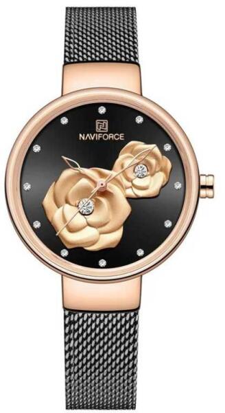 Naviforce Milánói szíjas női karóra, fekete számlappal, 3D virágokkal