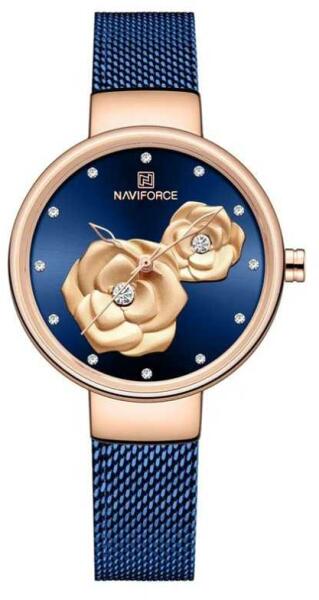 Naviforce Milánói szíjas női karóra, kék számlappal, 3D virágokkal