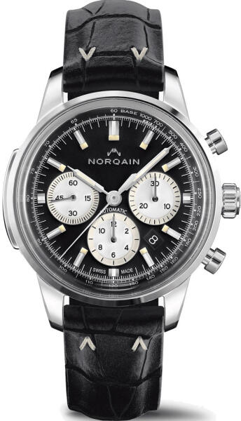 A Norqain Freedom 60 Chrono 43mm férfi karóra N2200.18S01. B01. L03 karóra házának anyaga nemesacél, színe ezüst, a szíjának anyaga bőr és a színe fekete. Az óratok átmérője 43 mm, alakja kerek. A karóra üvege zafír (karcolásmentes), szerkezete automata és vízállósága 10 atm (100m) (úszásra is alkalmas).