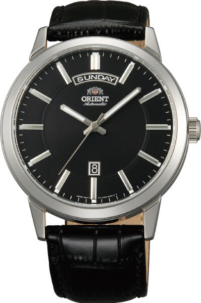 Orient Classic férfi karóra típusa FEV0U003BH. Orientférfi karóra tok anyaga nemesacél, színe ezüst, a szíj anyaga bőr és a színe fekete. A z óratok átmérője 42mm, alakja kerek. Akaróra üvege kristály (nehezen karcolható), szerkezete automata és vízállósága 5 atm (50m). Az ORIENT egy több mint 70 éves múltra visszatekintő tradícionális Japán óramárka. Jelenleg a Seiko-Epson csoport tagja. Különlegessége, hogy a világon sok márkától eltérően saját maga készítni szinte az Óra összes részét beleértve a bonyolult szerkezetet is. A legjobb ár-érték arányú minőségi márkás automata óra világszerte!