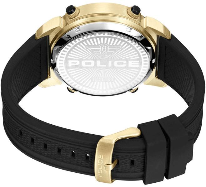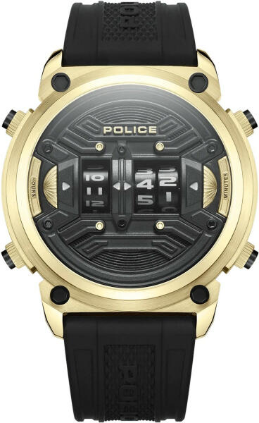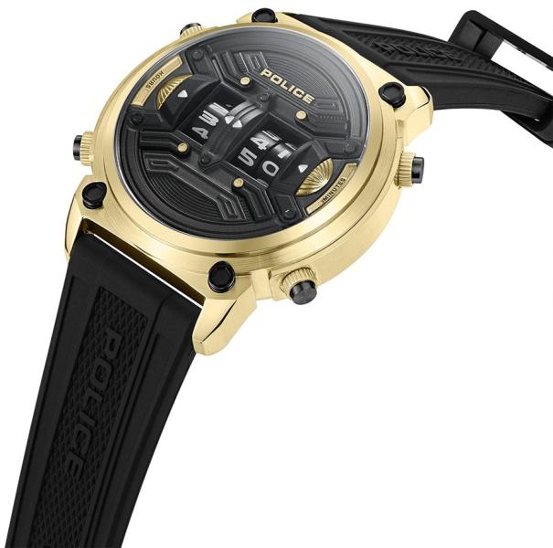 Márka: POLICE | Kollekció: Rotor | Modell: PEWJP2228501 | Garancia: 2 évek | Szín: fekete | Tok színe: arany árnyalat | Tok anyaga: nemesacél | Táplálás: elem | Szíj anyaga: műanyag | Vízálloság: 50M/5ATM | Üveg: ásványi | Forma: kerek | Csatolás típusa: standard felcsatolás | Számjegyek a számlapon: arab | Rendeltetés: férfi | Termék típusa: karórák | Típus: analóg | Átmérő: 50