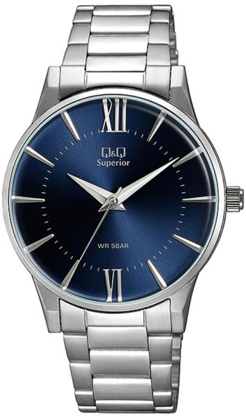 Q&Q férfi fémcsatos karóra, quartz, ezüst színű acél tok, ezüst színű csat, kék számlap, (Superior) S398J212Y (4022-0)