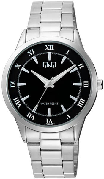 Q&Q férfi karóra, quartz, ezüst színű fémtok, ezüst színű nemesacél csat, fekete számlap, C10A-046PY (4204-3)