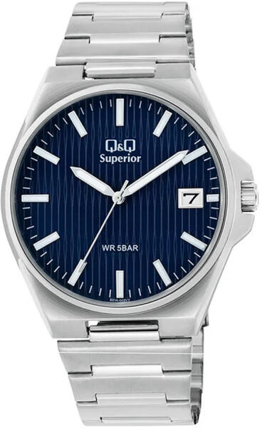 Q&Q férfi karóra, quartz, ezüst színű nemesacél tok, ezüst színű nemesacél csat, kék számlap, (Superior), S21A-003VY (4200-8)