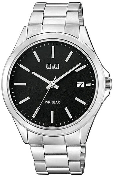 Q&Q férfi karóra, quartz, ezüst színű tok, ezüst színű fémcsat, fekete számlap A484J202Y (4220-3)