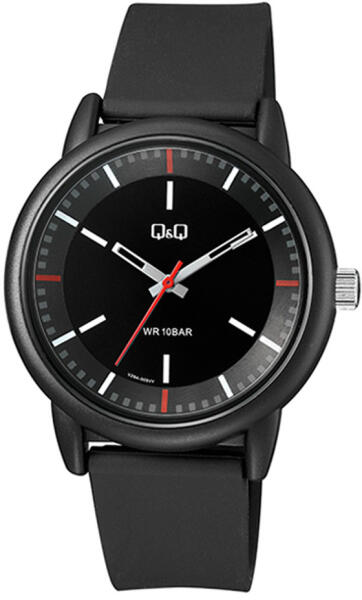 Q&Q férfi karóra, quartz, fekete színű műanyag tok, fekete színű számlap, fekete színű műanyag szíj, V29A-005VY (4082-3)