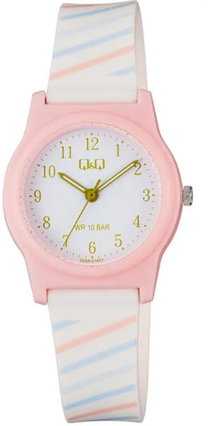 Q&Q karóra, quartz, rózsaszín színű műanyag tok, fehér színű számlap, fehér műanyag szíj, G23A-014VY (4214-8)