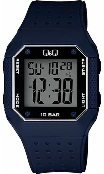 Q&Q férfi karóra, quartz, digitális, kék színű műanyag tok, LCD kijelzés, kék színű műanyag szíj, M158J007Y (4077-6)