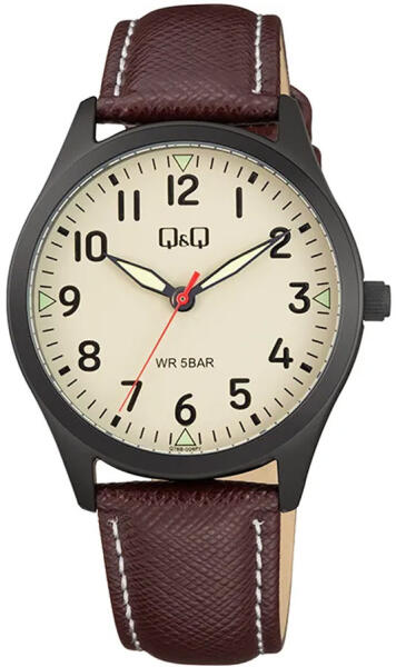Q&Q nő karóra, fekete színű fémtok, szürke színű számlap, barna színű bőrszíj Q76B-004PY (4216-1)