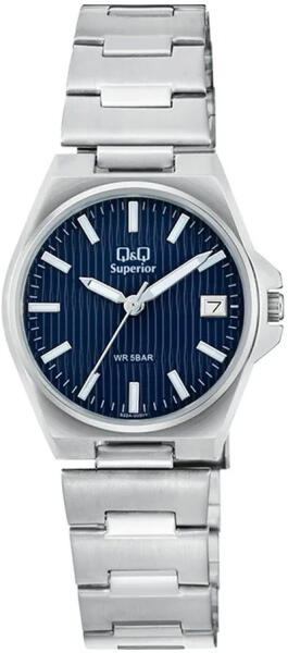 Q&Q női karóra, ezüst színű nemesacél tok, ezüst színű nemesacél csat, kék számlap, (Superior), S22A-003VY (4207-1)