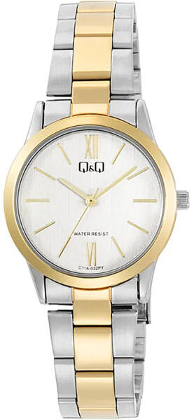 Q&Q női karóra, quartz, bicolor színű tok, bicolor színű fémcsat, ezüst színű számlap C11A-032PY (4218-3)