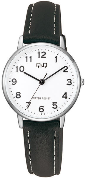 Q&Q női karóra, quartz, ezüst színű fémtok, fehér színű arab számos számlap, fekete színű bőrszíj, C65A-004PY (4088-2)
