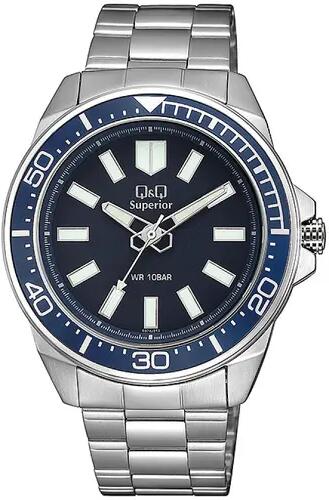Q&Q férfi fémcsatos karóra, quartz, ezüst színű tok és csat, kék számlap, (Superior) S374J212Y (4013-5)