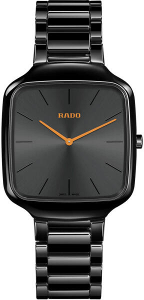 A Rado True Square Thinline unisex karóra R27054162 karóra házának anyaga kerámia, színe fekete, a szíjának anyaga kerámia és a színe fekete. Az óratok átmérője 37 mm, alakja négyszögű. A karóra üvege zafír (karcolásmentes), szerkezete kvarc és vízállósága 3 atm (30m) (cseppmentes).