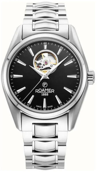 A Roamer Searock Master férfi karóra 984985 41 85 20 karóra házának anyaga nemesacél, színe ezüst, a szíjának anyaga nemesacél és a színe ezüst. Az óratok átmérője 42 mm, alakja kerek. A karóra üvege zafír (karcolásmentes), szerkezete automata és vízállósága 10 atm (100m) (úszásra is alkalmas).