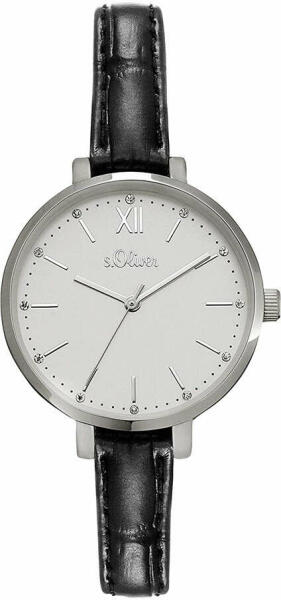 s. Oliver SO-4194-LQ Női karórarozsdamentes acél tok, ezüst színű bevonat, polírozottBőrszalag, fekete , Pin Bucklequartz óraszerkezet, akkumulátor működtetése3 atm vízállótárcsázási készlet kövekkeltárcsázza a színes ezüstötTok szélessége kb. 34 mmtokmagasság kb. 7 mmJön doboz.