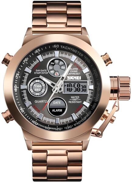 A karóra ütődésálló, LED alávilágítású, ébresztő funkciója van, analóg időmutatása és foszforeszkáló mutatói vannak. Ez a karóra Önt is elvarázsolja. Fém dobozban szállítjuk.