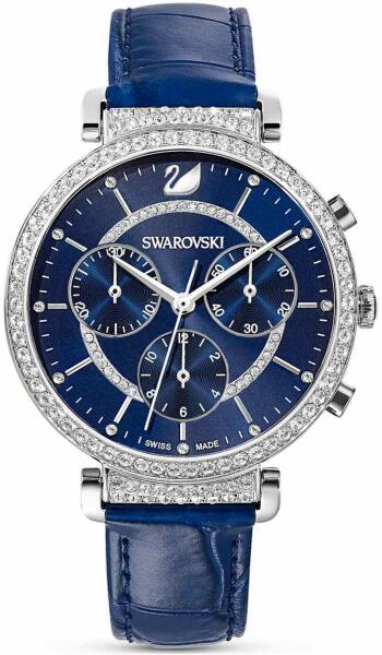 A modernitás és a hagyományok tökéletes keveréke, ez a Swarovski luxus kronográf karóra minden ruhát feldob. Rozsdamentes acél házzal és ragyogó kék napsugaras számlappal rendelkező, pazar dizájn 100 tiszta kristállyal van díszítve. A finoman integrált kronográf szerkezet, a számlapok hármasa és a kék valódi bőrszíj, krokodilmintával és gyorskioldó mechanizmussal, visszafogott hangulatot adnak. Időtlen klasszikus, bárhol viselhető, a farmertől és a pólótól a báli ruháig bármit kiegészít. Svájcban készült, 50 méterig vízálló. BÁV De LUXE - Elérhető luxus mindenkinek.
