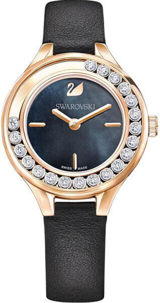 A Swarovski Lovely Crystals női karóra 5301877 karóra házának anyaga nemesacél, színe rose gold, a szíjának anyaga bőr és a színe fekete. Az óratok átmérője 31 mm, alakja kerek. A karóra üvege kristály (nehezen karcolható), szerkezete kvarc és vízállósága 5 atm (50m) (erősen cseppálló).