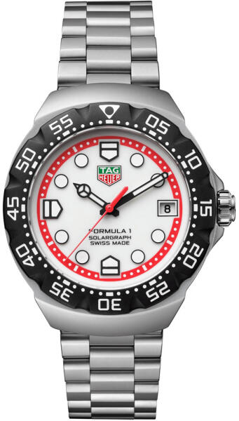 A Tag Heuer Formula 1 Solargraph férfi karóra WBY1111. BA0042 karóra házának anyaga nemesacél, színe ezüst, a szíjának anyaga nemesacél és a színe ezüst. Az óratok átmérője 38 mm, alakja kerek. A karóra üvege zafír (karcolásmentes), szerkezete és vízállósága 10 atm (100m) (úszásra is alkalmas).