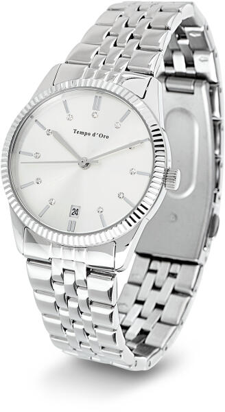 Nemesacél női karóra dátummal Szín: Ezüstszínű Anyag: Nemesacél Üvegkristályok Méretek: Ház Ø: kb. 32 mm Ház magassága üveggel: kb. 8 mm Óraszíj szélessége: kb. 16-18 mm Óraszíj vastagsága: kb. 3,5 mm Teljes hossz: kb. 21 cm Tartalom: Elemmel, rövidítéshez szükséges szerszámmal és használati útmutatóval NemesacélDátummal11 üvegkristályKarcálló ásványüveg3 év garancia5 bar nyomásig vízállóRövidítéshez való szerszámmal