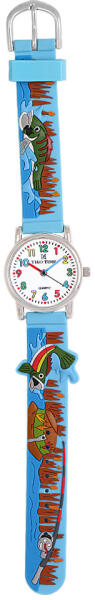 TIKO TIME karóra gyerekeknek, ezüst színű fémtok, quartz szerkezet, fehér arab színű számlap, 3D figurás világos kék színű műanyag szíj, cseppmentes vízállóság (horgászos) (7473-2)