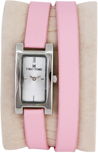 TIKO TIME női karóra, quartz, ezüst színű fémtok, ezüst színű számlap, rózsaszínű bőrszíj (hosszú) (7540-6)