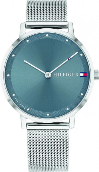 Divat Tommy Hilfiger karórák a Pippa kollekcióból. Ideális kiegészítők nőknek,  akik előnyben részesítik az analóg és kerek alakú karórákat. A belül ellenálló 6 mm magas tokban, melyet minőségi acél alkot, megbízható elemes (quartz) gépezetet talál, mely 35 mm átmérőjű számlapot működtet. A számlapot ellenálló ásványi üveg véd. A tok ezüst, számlap kék és a szíj ezüst színű. Anyagát tekintve acél. A karórák vízállósága 3 ATM.  Használati utasítás csak angol nyelven van