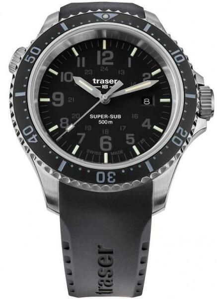 Márka: TRASER | Kollekció: P67 SUPERSUB | Modell: 109377 | Garancia: 2 évek | Szín: fekete | Tok színe: ezüst árnyalat | Tok anyaga: nemesacél | Táplálás: elem | Szíj anyaga: műanyag | Funkciók: Dátum – a hónap napja | Funkciók: Trigalight | Vízálloság: 500M/50ATM | Üveg: zafír | Forma: kerek | Csatolás típusa: standard felcsatolás | Számjegyek a számlapon: arab | Rendeltetés: férfi | Minimális kerület: 17 | Termék típusa: karórák | Típus: analóg | Maximális kerület: 23 | Szíj szélessége: 22-20 | Átmérő: 46 | Vastagság: 13