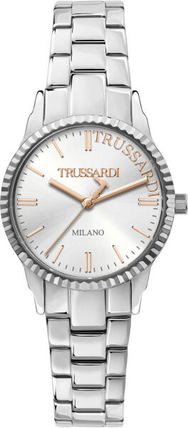 Az olasz Trussardi márka műhelyéből származó óra ideális olyan hölgyeknek akik kedvelik az időtálló kiegészítőket. Kék számlapjuk indexekből, márkanévből és mutatókból áll. A tok és a szíj is magas minőségű acélból készült. Első pillantásra tudni fogja, hogy ez az óra ténylegesen magas minőségű.