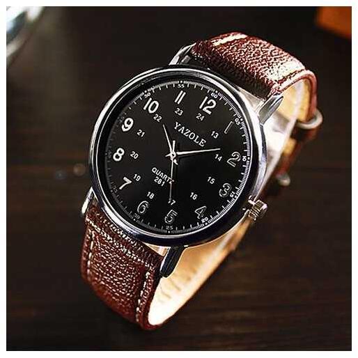Yazole 281 férfi karóra, fekete számlappal, barna szíjjal. 169-1oc