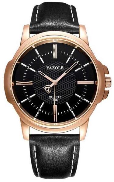 Elegáns Yazole 358 férfi karóra, fekete számlappal, óarany római számokkal, óarany tok, fekete bőrszíj, másodperc mutató. Nemesacél hátlappal, sportos és elegáns öltözethez. TULAJDONSÁGOKFérfi karóra rozsdamentes acél hátlap bőr szíj ásványi kristályüveg quartz szerkezet a chronograph csak díszMÉRETEKház szélessége: 4,6 cm ház magassága: 1,1 cm szíj hossza: 25 cm szíj szélessége: 2 cm